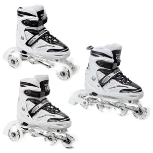 Hamulec można przełożyć do lewego buta. Rolki wyposażone zostały w świecące kółka, które świecą poprzez wprowadzenie ich w ruch. Rolki posiadają regulowany rozmiar w zakresie podanym w ofercie W zestawie znajdują się części umożliwiające samodzielny montaż rolko-wrotek i wrotek.