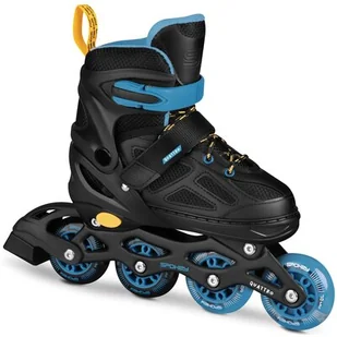 Łyżworolki dziecięce Spokey QUATTRO to 4w1, czyli rolki, łyżwy, wrotki i rolki-wrotki w jednym! Posiadają wymienną płozę, dzięki której można z nich korzystać w czterech różnych konfiguracjach, mają możliwość regulacji rozmiaru, dzięki czemu rosną razem z dzieckiem i optymalnie dopasują się do stopy, posiadają dwa przednie półprzezroczyste kółka, z których pierwsze jest świecące, są wyposażone w potrójny system zapinania (sznurówki, rzep oraz klamrę dwusekcyjną), który zapewnia maksymalny poziom bezpieczeństwa podczas jazdy! Łyżwy, rolki, wrotki i rolko-wrotki w jednym? Poznaj Spokey QUATTRO - praktyczne rozwiązanie dla najbardziej wymagających małych sportowców! To najlepszy wybór, który posiada możliwość regulacji rozmiaru. Dzięki temu rolki rosną wraz z dzieckiem, a Ty nie musisz co kilka miesięcy kupować nowej pary. Szybka i bezproblemowa regulacja zajmuje dosłownie kilka sekund i pozwala na właściwe ustawienie buta względem stopy dziecka. Kształt i design buta podkreślony został kolorowymi przeszyciami oraz dwukolorowymi sznurowadłami.