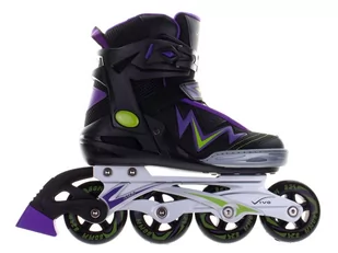 Rolki Vivo Viera PW-150AY fioletowo-czarne to świetny wybór dla każdego młodego amatora ruchu na świeżym powietrzu. Wysoka jakość wykonania, ciekawy design i patenty zwiększające bezpieczeństwo w trakcie użytkowania Lekki i przy tym wytrzymały but to doskonała stabilizacja i usztywnienie dla nogi Zapniesz je szybko i łatwo dzięki systemowi pasków Dzięki odpowiednio twardym kółkom nie odczujesz nierówności podłoża i uzyskasz doskonałą amortyzację Łożyska ABEC 7 zmniejszą natomiast tarcie, co przełoży się na szybszą i sprawniejszą jazdę Spełni oczekiwania zarówno młodych użytkowników, jak i ich rodziców Waga użytkownika: 20-100kg Specyfikacje: Producent: Vivo Płoza: aluminiowa Łożyska: