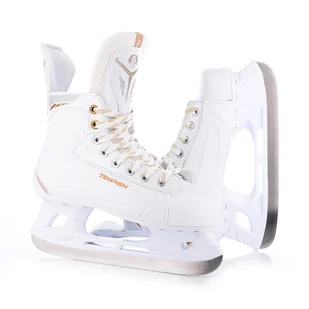 Damskie łyżwy - Kolor: biały • Materiał skorupy: twardy kompozyt termoplastyczny • Materiał wyściółki: Włókno nylonowe Cambra • Podeszwa: TPU • Ostrza: TEMPISH 7000 stal nierdzewna • System zapinania: Koronki