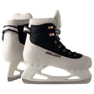 Łyżwy - Kolor: biały - czarny • Materiał wyściółki: Soft collar made of synthetic leather with foam padding • Podeszwa: Kompozyt • Ostrza: stal nierdzewna • System zapinania: Koronki