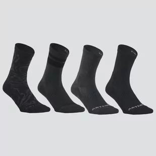 Te skarpety sportowe posiadają miękką dzianinę frotte na spodzie oraz wzmocnienie na pięcie, spodzie i pod palcami. Ściągacz w śródstopiu zapobiega przesuwaniu się skarpet. Zestaw 4 par. Wzmocnienia na pięcie, w palcach, na spodzie. Dzianina pętelkowa pod stopą.