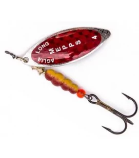 Na paletkę Aglia Long naklejony jest czerwony, łuskowany hologram. Tym razem efekt błystki ekscentrycznej – niczego istniejącego nie naśladuje, a jednak prowokuje, niekiedy bardziej aniżeli jakiekolwiek naturalne wzory. Są takie dni, kiedy czerwony, skrzący się tęczowo hologram wabi niemal wszystkie drapieżniki – od wzdręgi i okonia z jeziorowej płycizny, klenia i jazia sprzed rzecznej ostrogi, poprzez trolingowego szczupaka z głębokiej toni, po głowacicę z Popradu czy Dunajca. Redbo Giant Killer nr 5 sprawdza się też w przybrzeżnej strefie Bałtyku, gdzie bywa skuteczny na trocie i łososie.