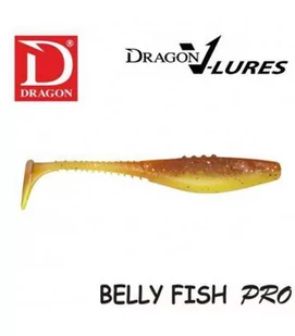 Można ją polecić do opadu, równomiernego prowadzenia z różnymi prędkościami, do gwałtownego podszarpywania i do ekstremalnie wolnego przesuwania po dnie. Działa perfekcyjnie z małym i dużym obciążeniem, na główce jigowej i na haku offsetowym. Jej ogonek zawsze pięknie wachluje na boki, dolna część korpusu wije się płynnym ruchem a środkowa lekko migocze bokami. Podobnie jak inne gumy Dragon V-Lures Pro, BELLY FISH wytwarzana jest ze specjalnego kompozytu, w tym przypadku w wersji o bardzo dużej miękkości. Ma naturalny zapach krewetkowy a dla wygody zbrojenia wyposażona jest w system znaczników na grzbiecie.