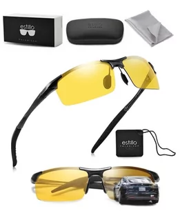 Żółte polaryzacyjne okulary HD rozjaśniające EST-612Y-1 marki Estillo®️ ✅Oprawka lekka aluminiowa w kolorze czarnym w stylu sportowym, soczewka żółta rozjaśniająca jakości Premium HD
