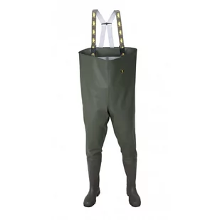 Spodniobuty wodoochronne z wgrzanymi na stałe wysokiej jakości kaloszami. Posiadają regulowane szelki z elastycznej, szerokiej gumy. Model produkowany z wodoochronnej, wytrzymałej tkaniny Plavitex Heavy Duty. Przeznaczony szczególnie dla wędkarzy i rybaków do użytku przy wszelkich pracach rybackich. Zapewniają skuteczną ochronę przed wodą.