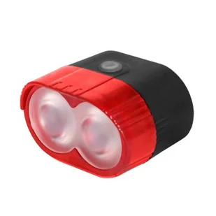 Rowerowa lampka tylna. Diody: 2 diody SMD LED. Funkcje: światło ciągłe mocne (2 - 3 h), średnie światło ciągłe (3 - 4 h), słabe światło (4 - 5 h), miganie (3 - 4 h). Lampka działa podczas jazdy, reaguje na drgania. Na postoju lampka się wyłącza w celu oszczędzania baterii.