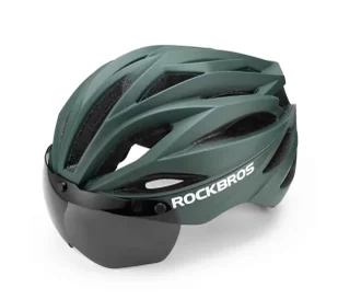 Kask Rowerowy Rockbros Z Szybką, Odpinane Okulary Z Ochroną Uv, Unisex - Zielony