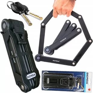 ZAPIĘCIE ZABEZPIECZENIE ROWEROWE SKŁADANE GERDA ZAPIĘCIE ROWEROWE SKŁADANE GERDA FOLD 840V CZARNE ⭐⭐⭐⭐⭐ ▶️ Zapięcie marki Gerda 840V to solidny produkt, który przyda się każdemu rowerzyście. Stanowi doskonałą alternatywę dla tradycyjnej linki. Długość zapięcia 84 cm daje idealny komfort przypinania w domowych warunkach oraz w podróżowaniu. Zbudowane jest z sześciu paneli stalowych 8 mm na solidnych przegubach, co zapewnia wysoki poziom bezpieczeństwa. Zapięcie rowerowe pokryte jest osłoną PCV, która chroni rower przed porysowaniem.