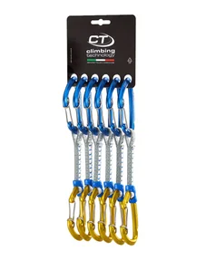 Ekspresy wspinaczkowe Climbing Technology Berry Set DY W 12 cm 6-pack to wielozadaniowa propozycja, która sprawdzi się zarówno podczas prowadzenia dróg sportowych, jak i pdczas wspinaczki wielowyciągowej. Ultralekka konstrukcja modelu z pewnością zaskarbi sobie uznanie użytkowników ceniących sobie redukcję wagi noszonego na szpejarkach sprzętu. Obecność 11 mm taśmy dyneema zapewnia wytrzymałość oraz niską wagę kompletu. 12-centymetrowa tasiemka połączona jest z anodowanymi karabinkami wykonanymi metodą kucia na gorąco. Technologia, w której wykonano karabinki, pozwoliła nadać im optymalny kształt, zapewniający łatwość operowania.