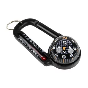 Karabinek z kompasem i termometrem wyprodukowany przez Fosco Industries.