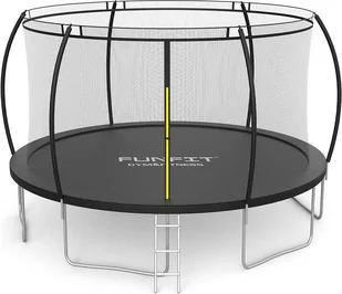Podwjne nogi zapewniajce wytrzymao, stabilno i pewno caej konstrukcji: Ocynkowane, podwjne, szerokie nogi w systemie "U". Galwanizowan drabink: Drabinka uatwiajca korzystanie z trampoliny w zestawie. Komfort i bezpieczestwo Trampoliny FUNFIT z siatk wewntrzn zapewniaj komfort oraz bezpieczestwo zwaszcza najmodszym skoczkom.