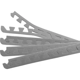 Zestaw krawędzi do mat ochronnych PUZZLE GORILLA SPORTS szare 8 sztuk Parametry techniczne: Grubość: 1,2 cm Długość bez zębów: 58,5 cm Szerokość bez zębów: 2 cm Szerokość z zębami: 4 cm Ilość krawędzi w zestawie: