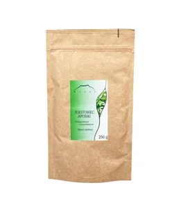 Składniki: kłącze rdestowca japońskiego mielone 100% Kraj pochodzenia: Polska Zalecany sposób użycia: odwar - 2 łyżki surowca zalać 2 szklankami wody, gotować na wolnym ogniu około 15 minut. Odstawić na 30 minut pod przykryciem. Przecedzić.