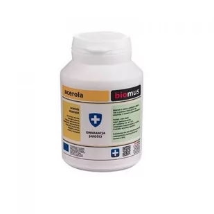 OPIS Acerola witamina C proszek 100g BIOMUS Malpigia granatolistna (Malpighia glabra L.), acerola, nadgwiazdka granatolistna lub wiśnia z Barbados to roślina z rodziny malpigiowatych. Występuje w południowej części Ameryki Północnej (Teksas, Meksyk), w Ameryce Środkowej, północnej części Ameryki Południowej, Hiszpanii i Portugalii. Jest to bogate źródło witaminy C. Ekstrakt z owocu malipighia glabra 100g zawiera 1400-2500mg witamiany C (kwasu L-askorbinowego). Postać: ciało stałeKolor: