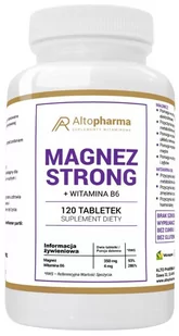 AltoPharma Magnez Strong + Witamina B6 120 tabletek Stres Skurcze Mocna dawka Magnez Strong + Witamina B6 AltoPharma 120 tabletek Suplement diety Zalety: