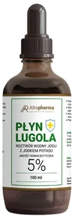 AltoPharma Płyn Lugola 5% Roztwór Wodny Jodu z Jodkiem potasu Jakość farmaceutyczna Płyn Lugola 5% - Roztwór Wodny Jodu z Jodkiem potasu AltoPharma 100 ml Ja...