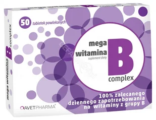 Mega witamina B2 3mg suplement diety zawiera ryboflawinę w dawce pokrywającej 214% dziennego zapotrzebowanie organizmu na witaminę B2. Mega witamina B2 3mg została opracowana z myślą o osobach dbających o zdrowie i urodę, pragnących uzupełnić swoją codzienna dietę o witaminę B2 - niezbędną do prawidłowego funkcjonowania organizmu. Mega witamina B2 3mg została zoptymalizowana pod względem bezpieczeństwa zastosowanych składników pomocniczych w tabletce. Nie zawiera w swoim składzie barwników syntetycznych. Witamina B2: pomaga w utrzymaniu prawidłowego stanu czerwonych krwinek, pomaga w prawidłowym funkcjonowaniu układu nerwowego, pomaga w utrzymaniu prawidłowego widzenia, pomaga w ochronie komórek przed stresem oksydacyjnym, pomaga zachować zdrową skórę, przyczynia się do utrzymania prawidłowego metabolizmu energetycznego, przyczynia się utrzymania prawidłowego metabolizmu żelaza, przyczynia się do zmniejszenia uczucia zmęczenia i znużenia. Zastosowanie: uzupełnienie codziennej diety w składniki zawarte w suplemencie. Zalecana spożycie: 1 tabletka, po posiłku. Tabletkę należy popić wodą. Składniki: celuloza mikrokrystaliczna (substancja wypełniająca), hydroksypropylometyloceluloza (substancja glazurująca - składnik powłoczki), stearynian magnezu (substancja przeciwzbrylajaca), ryboflawina (witamina B2), talk (substancja przeciwzbrylająca - składnik powłoczki), ksylitol (substancja glazurująca - składnik powłoczki), lecytyna sojowa (emulgator - składnik powłoczki). 1 tabletka zawiera: witamina B2 (ryboflawina) 3,0mg (214%)*. *RWS - Referencyjna Wartość Spożycia. Przeciwwskazania: nie stosować w przypadku nadwrażliwości na którykolwiek ze składników preparatu. Nie zaleca się stosowania preparatu kobietom w ciąży i karmiacym piersią. Ważne wskazówki: Nie przekraczać zalecanej porcji do spożycia w ciągu dnia. Produkt nie może być stosowany jako substytut (zamiennik) zróżnicowanej diety i zdrowego trybu życia. Zrównoważony sposób żywienia prawidłowy tryb życia jest ważny dla funkcjonowania organizmu człowieka. Preparat należy przechowywać w suchym miejscu, w temperaturze poniżej 25°C, w sposób niedostępny dla małych dzieci. Chronić przed światłem. Produkt nie zawiera barwników. Produkt zawiera soję. Producent: AventPharma S.K.A. ul.