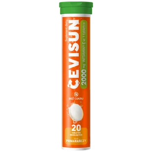 Produkt CeviSun 2000 mg, 20 tabletek musujących do kupienia w Gemini. CeviSun to suplement diety w postaci tabletek musujących o smaku pomarańczy, zawierający witaminę C (kwas L-askorbinowy) – 2000 mg w jed ...