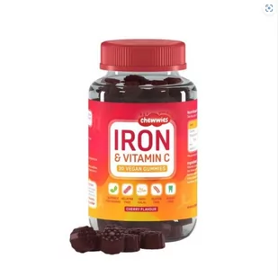 Chewwies Żelazo i Witamina C, wiśnia, 30 gum Żelazo Jest jednym z niezbędnych minerałów i odgrywa ważną rolę w zmniejszenie zmęczenia i znużenia, odpowiednie dotlenienie organizmu czy wzmocnienie układu odpornościowego. Żelazko z witaminą C pomaga zmniejszyć uczucie zmęczenia i znużenia. Ponadto nie zawiera sztucznych aromatów, barwników, konserwantów. Forma gumowatych cukierków. Wsparcie systemu immunologicznego.