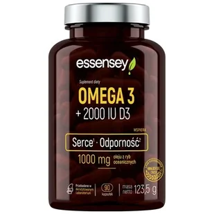 ESSENSEY OMEGA 3 + D3 zawiera witaminę D, która pomaga w prawidłowym funkcjonowaniu układu odpornościowego oraz pomaga w utrzymaniu zdrowych kości.