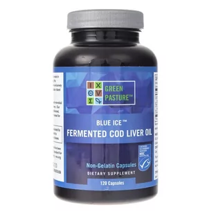 - Blue Ice(TM) Fermented Cod Liver Oil od Green Pasture, to suplement diety zawierający fermentowany olej z wątroby dorsza, otrzymywany metodami naturalnymi