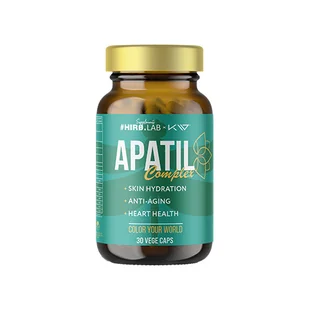 Apatil Complex to suplement wspierający nawilżenie skóry, zdrowie serca i działanie przeciwstarzeniowe. Zawiera L-teaninę, soplówkę jeżowatą, Cordyceps, bakopę, koenzym Q10, witaminy B1, B6, B12, kwas foliowy i biotynę.