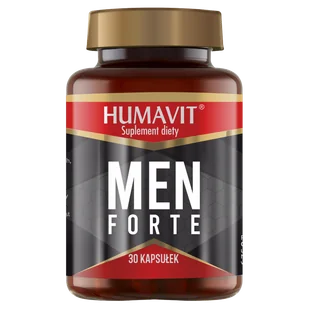 MEN FORTE to suplement diety w formie kapsułki, wspierający witalność i sprawność fizyczną mężczyzn, oparty na recepturze zawierającej ekstrakty roślinne takie jak Lepidium meyenii (Maca), Tribulus terrestris, żeń-szenia koreańskiego.