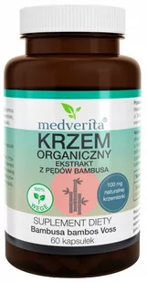 Krzem organiczny ekstrakt z pędów bambusa 60 kapsułek Krzem należy do grupy podstawowych pierwiastków śladowych, niezbędnych dla organizmu człowieka. Jednym z najbogatszych źródeł krzemu jest bambus. Roślina ta pochodzi z tropikalnej części Azji. Preparat zawiera ekstrakt z pędów bambusa standaryzowany na obecność 75% naturalnie występującej krzemionki. Każda kapsułka zawiera 133 mg wyciągu z pędów bambusa, w tym 100 mg organicznego krzemu.