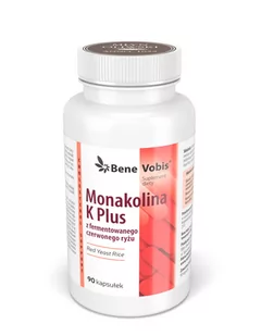 Nie należy stosować produktu po upływie daty minimalnej trwałości. Data minimalnej trwałości znajduje się na dole etykiety. Nie należy spożywać dziennej porcji w ilości równej lub wyższej niż 3 mg monakolin ze sfermentowanego czerwonego ryżu. OPIS PRODUKTU: Suplement Diety - Bene Vobis® Monakolina K to wysokiej jakości suplement diety w kapsułkach przeznaczony dla osób chcących uzupełnić swoją dietę w ekstrakt z ziaren fermentowanego czerwonego ryżu (Read Yeast Rice) standaryzowany na zawartość monakoliny K.