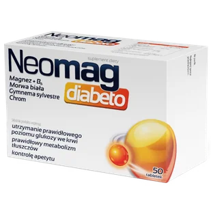 Produkt NeoMag Diabeto, 50 tabletek do kupienia w Gemini. NeoMag Diabeto to suplement diety przeznaczony do uzupełniania diety osób dorosłych w magnez, witaminę B6, chrom oraz ekstrakty roślinne z liści morwy białej i ...