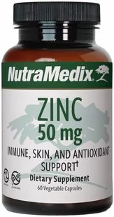 NutraMedix Zinc jest doskonale przyswajany oraz dobrze tolerowany przez organizm. Preparat w postaci kapsułek. Otoczka kapsułki wykonana wyłącznie z produktów pochodzenia roślinnego (bez zastosowania żelatyny).