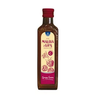 Pasteryzowany syrop z owoców malin, wzbogacony o ekstrakt z kwiatów lipy i witaminę C.