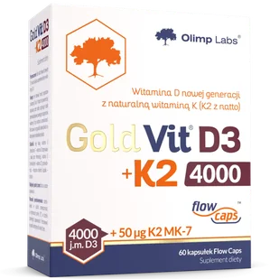 Produkt Olimp Gold-Vit D3 + K2, witamina D 4000 j.m. + witamina K 50 µg, 60 kapsułek do kupienia w Gemini. Olimp Gold-Vit D3 + K2 4000 IU to suplement diety w kapsułkach zawierający witaminę D w formie cholekalcyferolu w ...