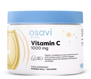 Osavi Witamina C, proszek, 300 g Witamina C , czyli kwas askorbinowy, jest niezbędnym rozpuszczalnym w wodzie składnikiem odżywczym, który działa jako silny przeciwutleniacz chroniący organizm przed stresem oksydacyjnym powodowanym przez wolne rodniki. Witamina ta jest kluczowa w syntezie kolagenu, który zapewnia prawidłowe funkcjonowanie naczyń krwionośnych, kości, chrząstek, dziąseł, skóry i zębów, wspierając w ten sposób ogólną integralność struktur organizmu. Witamina C odgrywa ważną rolę w wchłanianiu wapnia i żelaza ze źródeł roślinnych, co jest niezbędne do utrzymania silnego i zdrowego organizmu. Ponadto bierze udział w tworzeniu kilku kluczowych hormonów i enzymów regulujących metabolizm i bilans energetyczny. Ta niezbędna witamina jest również niezbędna do prawidłowego funkcjonowania układu nerwowego i wspiera utrzymanie prawidłowych funkcji psychologicznych.
