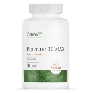 OstroVit Piperyna 30 mg MAX to ekstrakt z owoców czarnego pieprzu zawierający aż 95% piperyny. Suplement dostępny jest w formie wygodnych w spożyciu tabletek, które wspierają pracę wielu układów. Piperyna może pomagać w odchudzaniu, a także charakteryzuje się silnymi właściwościami oczyszczającymi. Dodatkowo reguluje poziom przyswajania innych cennych składników odżywczych.