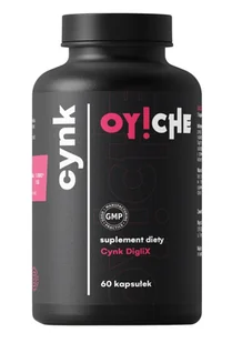 Oyche Cynk suplement diety, kapsułki 60 szt. Suplement diety zawierający 15 mg cynku elementarnego w wysoko przyswajalnej formie bisglicynianu. Wzbogacony o L-leucynę i błonnik akacjowy, wspiera odporność, skórę, włosy, paznokcie oraz prawidłowy metabolizm. Produkt wolny od zbędnych dodatków, barwników i konserwantów. Dlaczego warto: