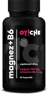 OY!CHE Magnez + B6 – codzienne wsparcie dla energii, mięśni i odpornościZadbaj o swoje samopoczucie z OY!CHE Magnez + B6 – certyfikowanym suplementem diety stworzonym z myślą o Twoim zdrowiu. Każda kapsułka to 100 mg magnezu i 3 mg witaminy B6 – składników, które działają razem, by wspierać układ nerwowy, mięśnie i odporność każdego dnia. Opakowanie: 60 kapsułek – wygodnych w stosowaniu, idealnych do codziennej suplementacji. Jak działa OY!CHE Magnez + B6?Wsparcie układu nerwowegoMagnez pomaga w re