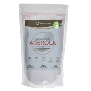 PROGRESS LABS Acerola to suplement diety, który nie zawiera żadnych dodatkowych substancji. Dostarcza ekstraktu z aceroli bogatego w naturalną witaminę C. Produkt polecany jest do codziennego stosowania. Dedykowany dla osób trenujących rekreacyjnie i wyczynowo wszystkie dyscypliny sportu.
