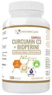 Progress Labs Curcumin C3 Complex 500mg Bioperine 10mg 120 kapsułek Kurkuma Pieprz czarny Curcumin C3 Complex 500mg Bioperine 10mg Progress Labs 120 kapsułek Suplement diety Zalety: