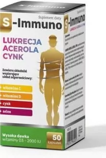 S-Immuno lukrecja, acerola, cynk to wysokoskoncentrowany preparat roślinnych ekstraktów, witamin i minerałów wspierających prawidłowe funkcjonowanie układu immunologicznego