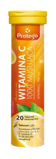 Protego Witamina C 1000 musująca to suplement diety w postaci tabletek musujących o smaku cytrynowym zawierających witaminę C (kwas L-askorbinowy).