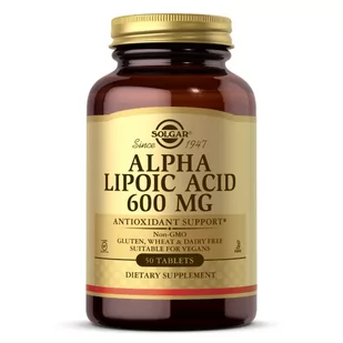 Kwas alfa liponowy jest koenzymem i jednym z najważniejszych antyoksydantów. ALA nazywany jest uniwersalnym przeciwutleniaczem, ponieważ jest rozpuszczalny w wodzie i tłuszczach, dzięki czemu działa zarówno w błonie, jak i w wodnych częściach komórek. Składniki: kwas alfa-liponowy, substancje wypełniające (celuloza mikrokrystaliczna, celuloza roślinna), substancje przeciwzbrylające (roślinne kwasy tłuszczowe, dwutlenek krzemu, roślinne sole magnezowe kwasów tłuszczowych); substancja poślizgowa (glicerol roślinny). Składniki 1 tabletka Kwas alfa-liponowy (ALA) 600 mg Sposób użycia: Przyjmować 1 tabletkę dziennie, najlepiej w trakcie posiłku.