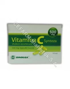 Wpywa na prawidowy przebieg szeregu procesw zachodzcych w organizmie dlatego zalecana jest midzy innymi w celu przyspieszania procesu gojenia i bliznowacenia ran. Skad: Substancj czynn leku Synteza Vitamina C 500mg jest kwas askorbowy (Acidum ascorbicum). Jedna kapsuka zawiera 500 mg witaminy C. Pozostae skadniki to: elatyna, magnezu stearynian, krzemionka koloidalna bezwodna, tytanu dwutlenek (E171), cie chinolinowa (E104), cie pomaraczowa (E110).