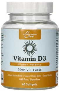 Witamina D3 o wysokiej dawce 20000 IU, doskonale wpływająca na układ odpornościowy organizmu. Pomaga w utrzymywaniu mocnych kości i zębów, stymuluje pracę układu mięśniowego oraz nerwowego, bierze udział w procesie podziału komórek oraz wspiera wątrobę.