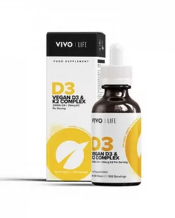 Vivo Life Vegan D3 & K2 Complex 2000 IU (witamina D3 2000 IU & K2 25 mcg - wegańska), 50 ml