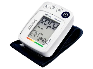 Ciśnieniomierz Koenic KBP 1024 Biały/niebieski Koenic KBP 1024 to prosty w obsłudze ciśnieniomierz nadgarstkowy, który umożliwia szybki i wygodny pomiar ciśnienia krwi w warunkach domowych. Urządzenie wykorzystuje metodę oscylometryczną, oferuje funkcję wykrywania arytmii oraz zapis wyników dla dwóch użytkowników. Dzięki kompaktowej konstrukcji i czytelnemu wyświetlaczowi LCD sprawdzi się w codziennym monitorowaniu parametrów zdrowotnych.