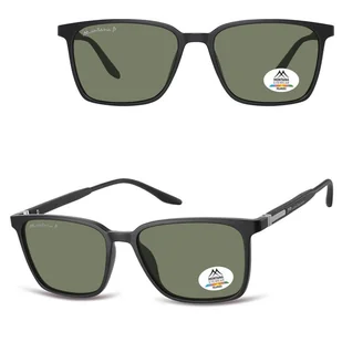 Czarne męskie okulary przeciwsłoneczne polaryzacyjne z filtrem UV400 w kształcie prostokątnym z zawiasami teleskopowymi typu flex marki Montana MP186B