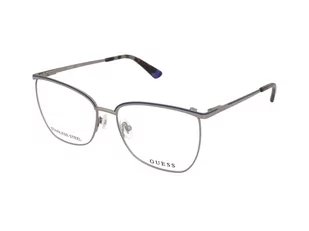 Bądź modny, gdziekolwiek jesteś, z okularami Guess. Nasz wybór słynnej amerykańskiej marki zadowoli wszystkich, ponieważ obejmuje najbardziej kultowe i ponadczasowe kształty, kolory i style. O tych okularach Oprawki kwadratowe doskonale sprawdzą się w przypadku osób o diamentowych, owalnych i okrągłych twarzach. Te okulary są wyposażone w elastyczne zawiasy zauszników, co jest doskonałym elementem dla tych, którzy często zdejmują okulary!Niebieskie oprawki zazwyczaj idealnie pasują, gdy chcesz uzyskać klasyczny wygląd. Oprawki są w kolorze ruthenium, co oznacza, że posiadają stylowe, siwo-metaliczne wykończenie.