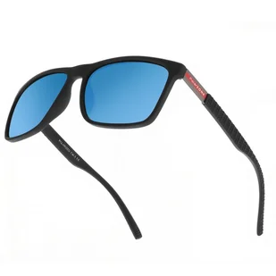 Elastyczne okulary polaryzacyjne przeciwsłoneczne lustrzanki z niebieską soczewką i czarną oprawką kształt prostokątny - POL-705A